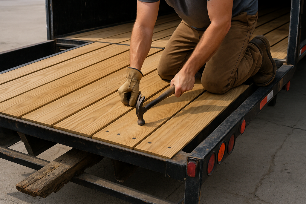 We handle complete and partial flooring rebuilds for dry vans, reefers, and deck trailers. Our services include hardwood and composite flooring installation, replacement of damaged boards, and reinforcement of underlying structures. We also repair or replace rotten or corroded subfloors, ensuring the deck remains durable and capable of handling heavy loads. All installations are performed to manufacturer-grade quality to maximize strength and longevity.